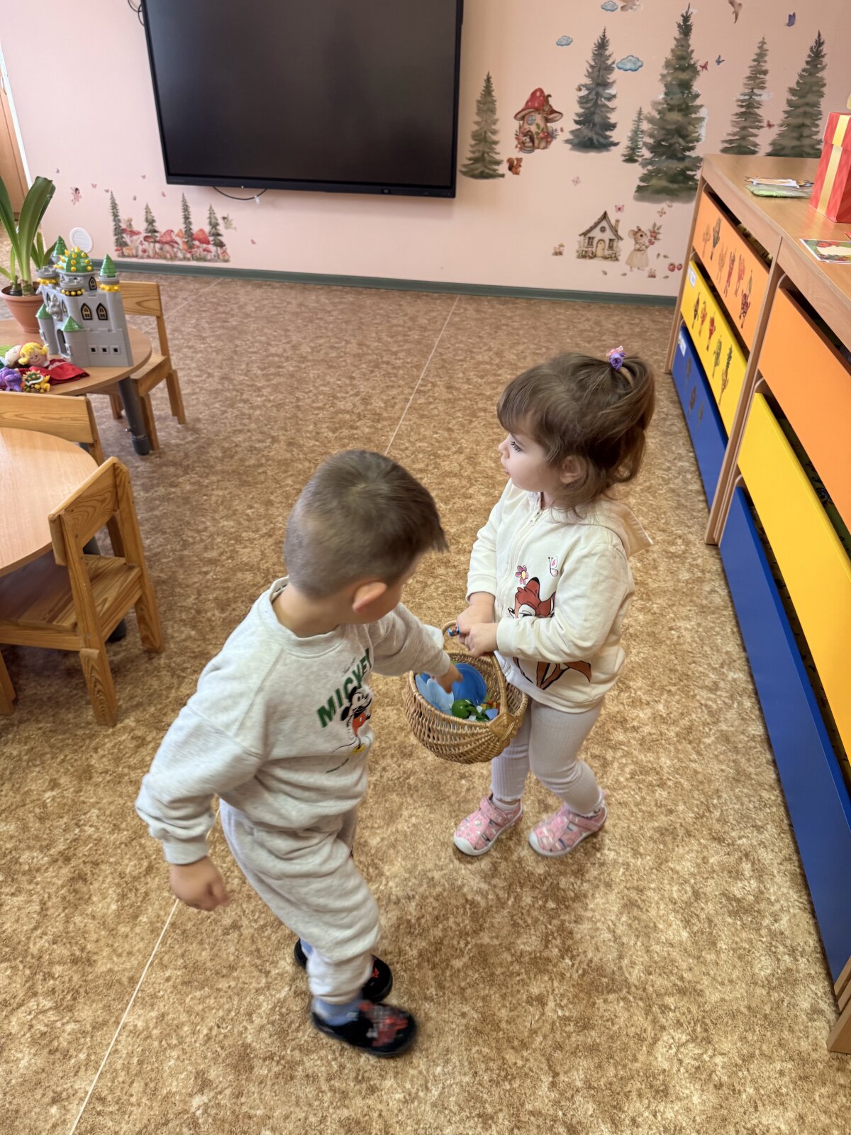 - rozpoznawały przedmioty dotykiem z pudełka–niespodzianki, rozwijając zmysły i słownictwo,