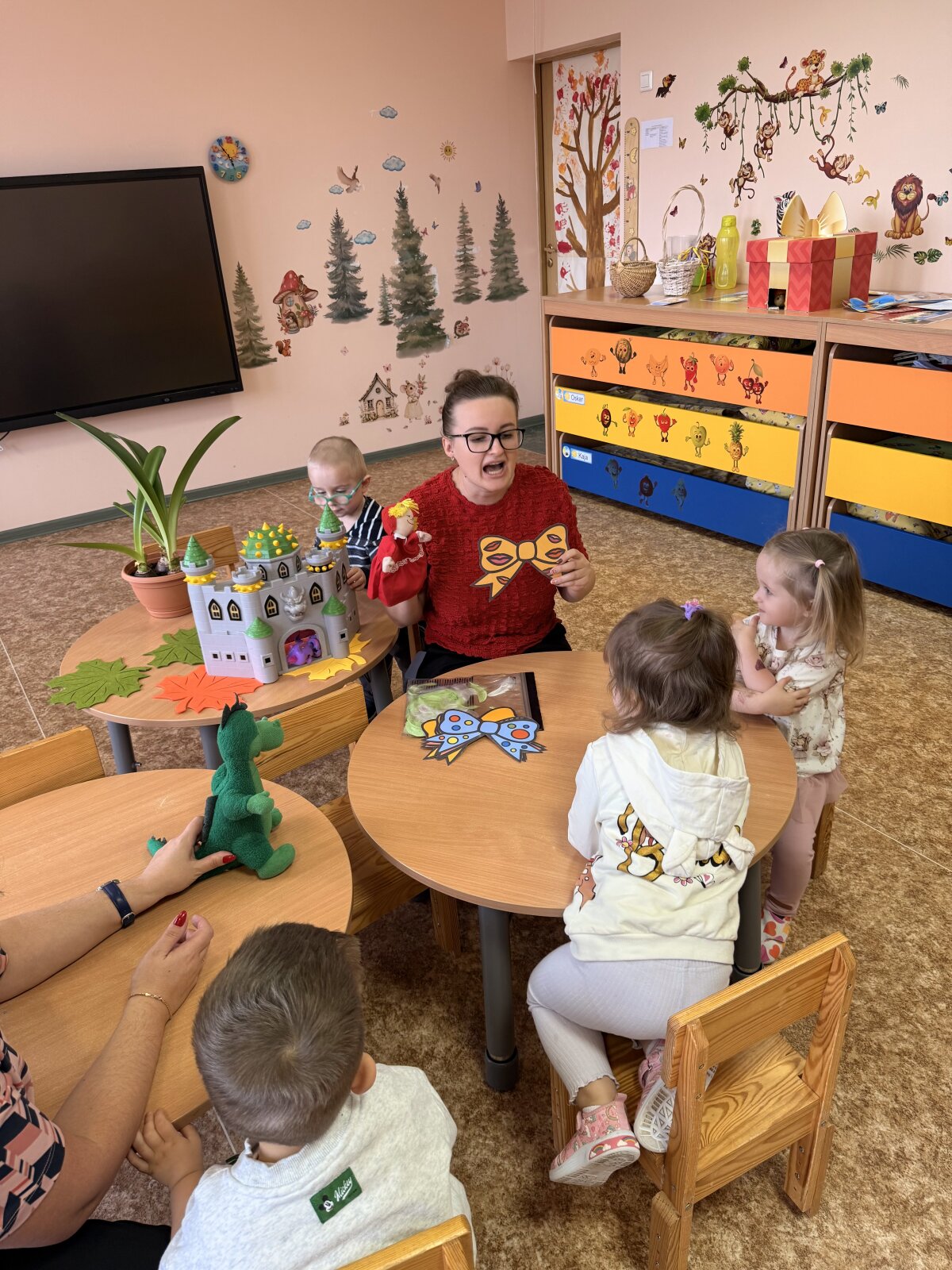 W grupie „Słoneczko” odbyły się dziś zajęcia integracyjne prowadzone wspólnie przez logopedę panią Beatę oraz wychowawcę panią Annę. Tematem spotkania była przygoda „Rycerz, księżniczka i smok”.