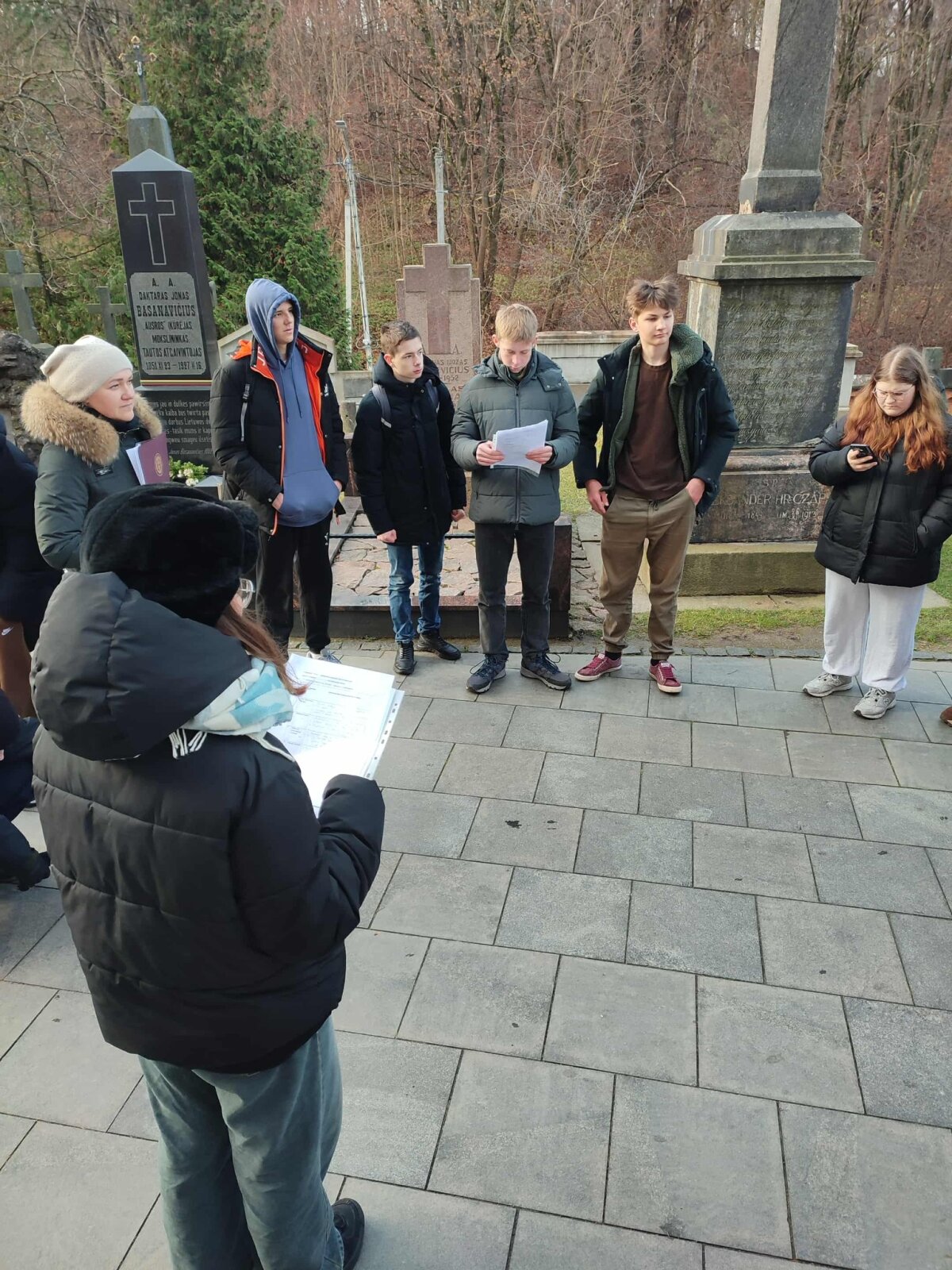 Lapkričio 13 d. mūsų gimnazijos IG kl. mokiniai dalyvavo netradicinėje, integruotoje istorijos, pilietiškumo ugdymo, lietuvių kalbos ir literatūros pamokoje Rasų kapinėse Vilniuje. Pamokos tema – „Iškiliausios asmenybės Lietuvos istorijoje“.