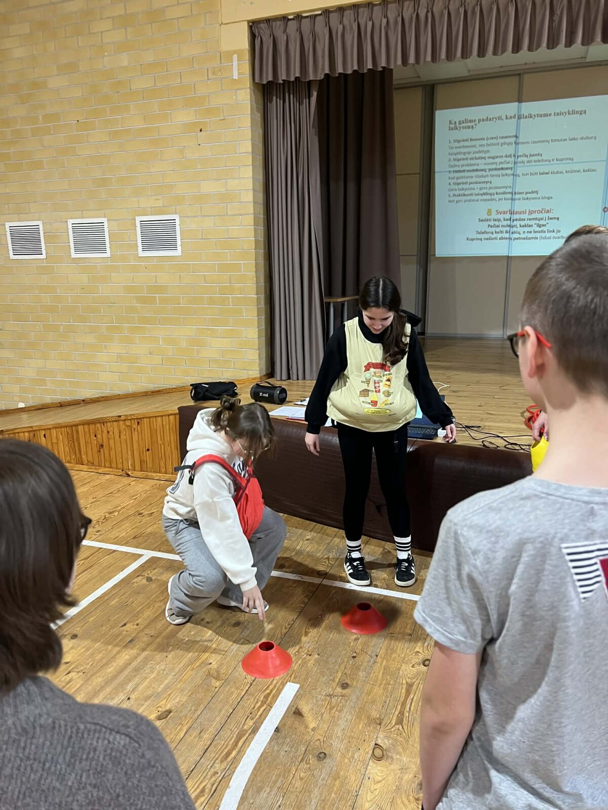 Gruodžio 11 d. su visuomenės sveikatos specialiste Dominyka Vyšniauskaite pravedėme integruotas pamokas 7, 8 ir IIG klasių mokiniams tema „Taisyklinga laikysena – raktas į sveiką kūną“. Mokiniai išklausė informaciją apie taisyklingos laikysenos svarbą, netaisyklingos laikysenos priežastis, poveikį ir pasekmes organizmui, aiškinosi, kaip galima išlaikyti taisyklingą laikyseną ir formuotis pagrindinius įpročius. Mokiniai atliko taisyklingos laikysenos įsivertinimo testą, išbandė, kaip įvairūs svoriai, netaisyklingas kuprinės nešimas pakeičia laikyseną. Individualiais pratimais ir grupiniais žaidimais stiprino nugaros, juosmens, pilvo preso raumenis, gerino pusiausvyrą ir koordinaciją. Mokiniai ugdėsi pažinimo, komunikavimo, socialines emocines ir sveikos gyvensenos kompetencijas.